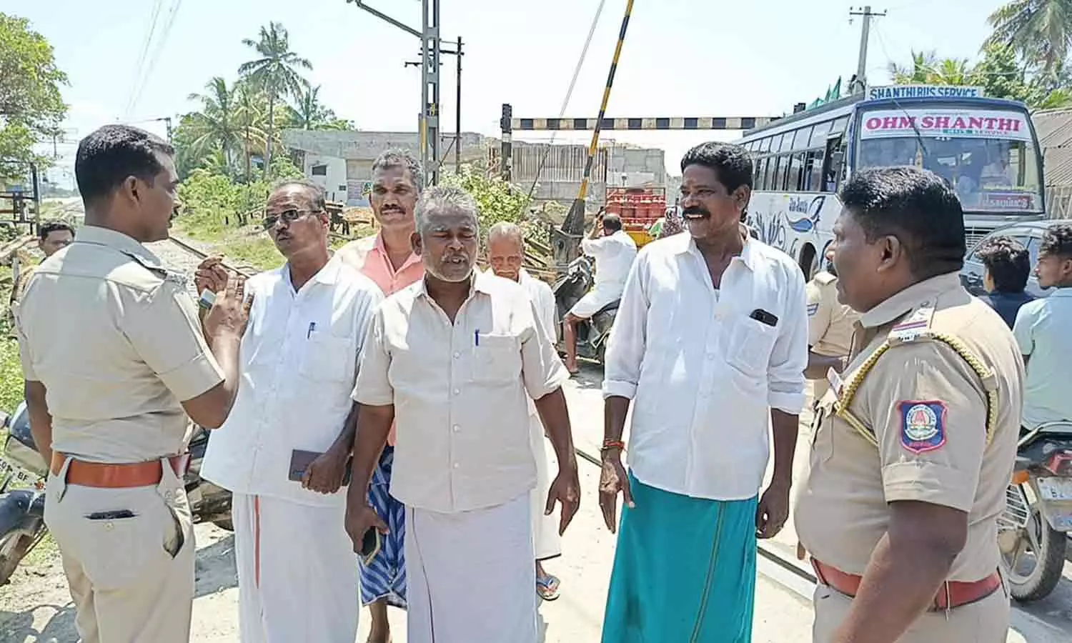 மறியலில் ஈடுபட்டவர்களிடம் போலீசார் பேச்சுவார்த்தை நடத்திய காட்சி.
