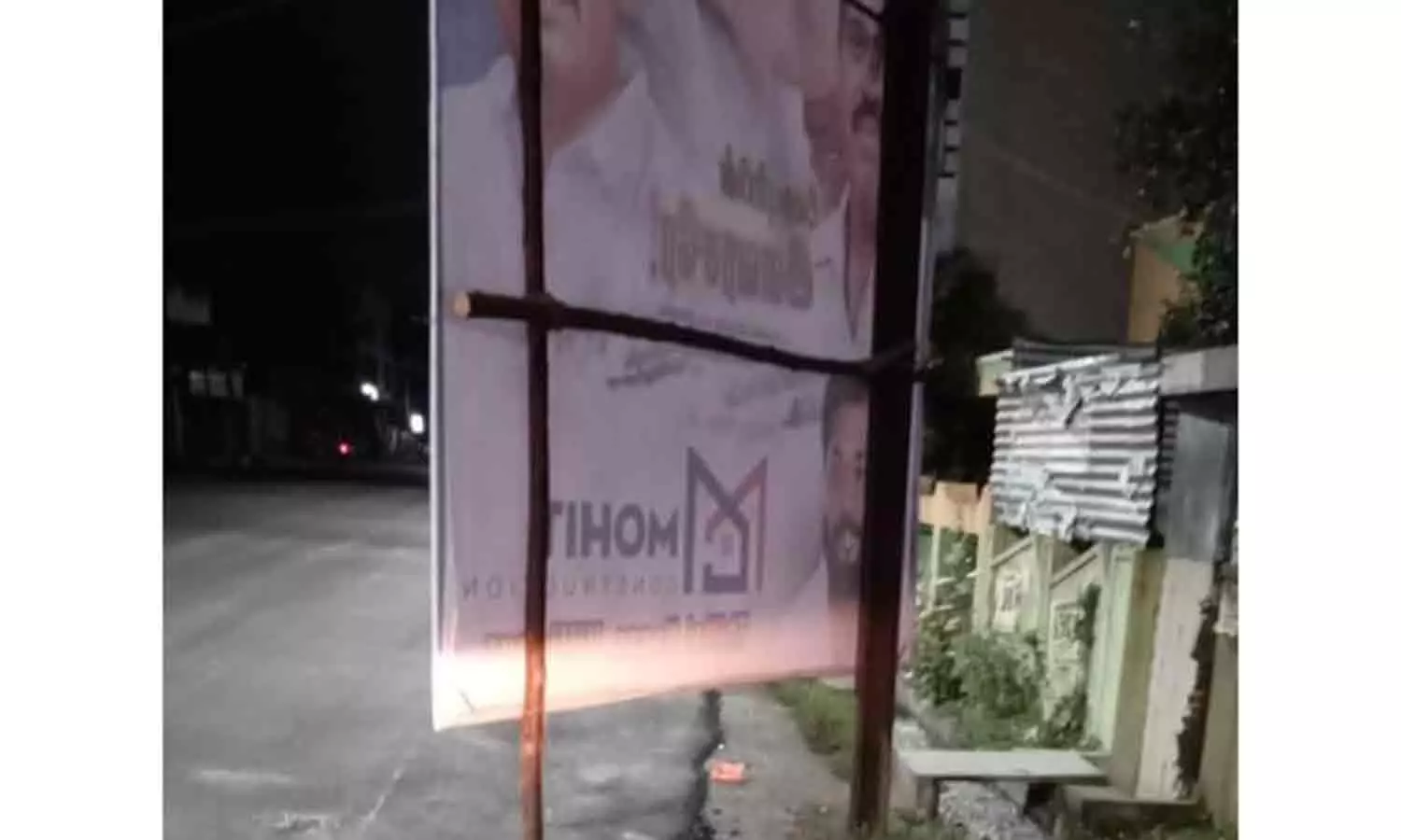 சாலை அமைக்கும் பணியின்போது அந்த பேனர் வைக்கப்பட்ட கம்பத்தை சுற்றிலும் வழிவிட்டு சாலை அமைத்துள்ளனர். நாளை பேனர் அகற்றப்பட்ட பின் அந்த இடத்தில் பெரும் பள்ளம் ஏற்படும்.