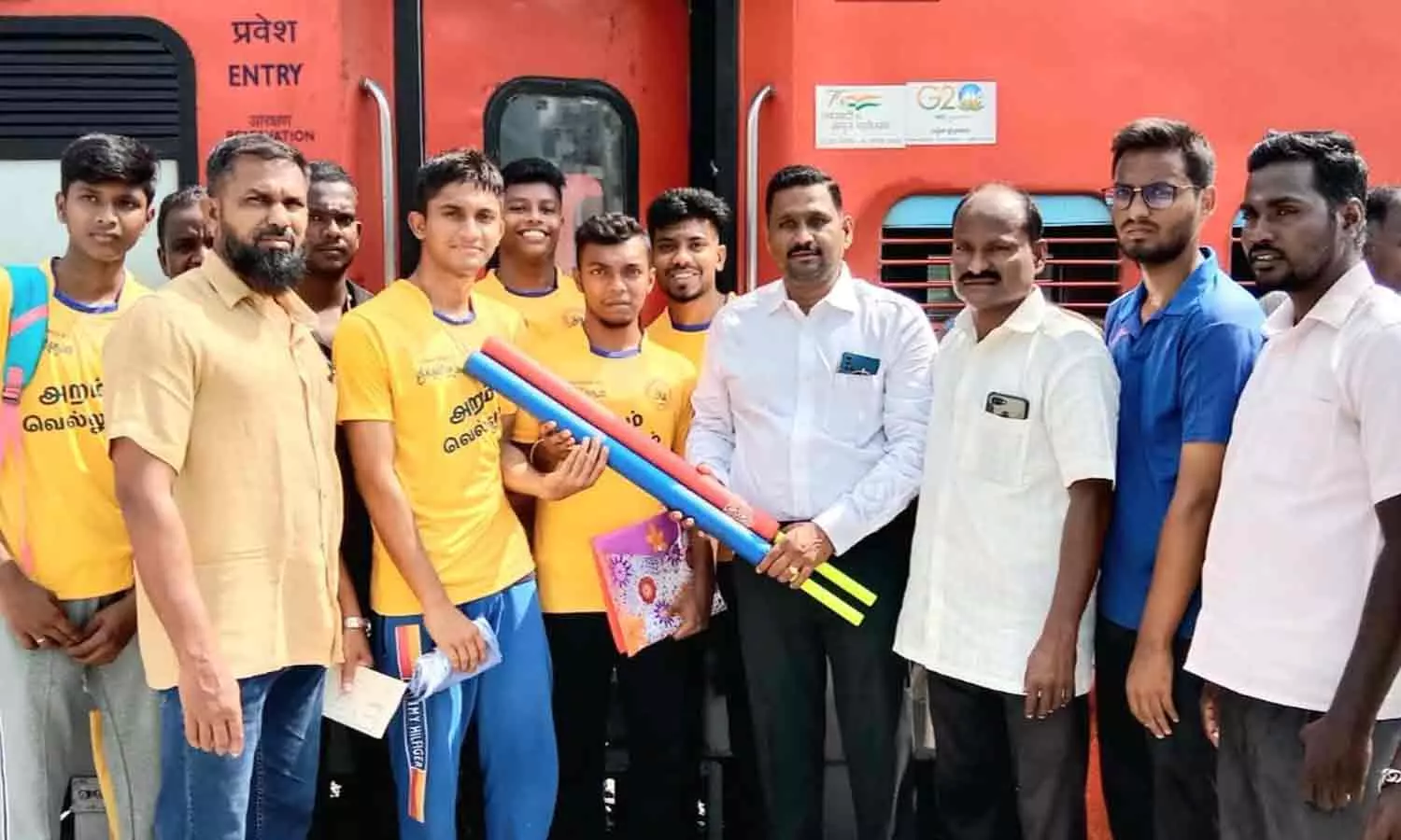 - கராத்தே சுந்தர்ராஜன் வீரர்களை வாழ்த்தி பொன்னாடை போர்த்தி வழி அனுப்பினார்.