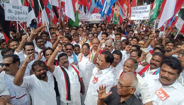 ஆனால் இப்போது அரசு வெளியிட்டுள்ள பணி தேர்வு அறிவிப்புகளில் இடஒதுக்கீடு அறிவிக்கப்பட்டுள்ளது. முற்பட்ட வகுப்பினருக்கான 10 சதவீத இடஒதுக்கீட்டை புதுவை மாநிலத்தில் நடைமுறைப்படுத்த கூடாது என்பதை வலியுறுத்தி புதுவை தலைமை செயலகத்தை முற்றுகையிட போவதாக தி.மு.க.-காங்கிரஸ் கூட்டணி கட்சிகள் அறிவித்திருந்தது.