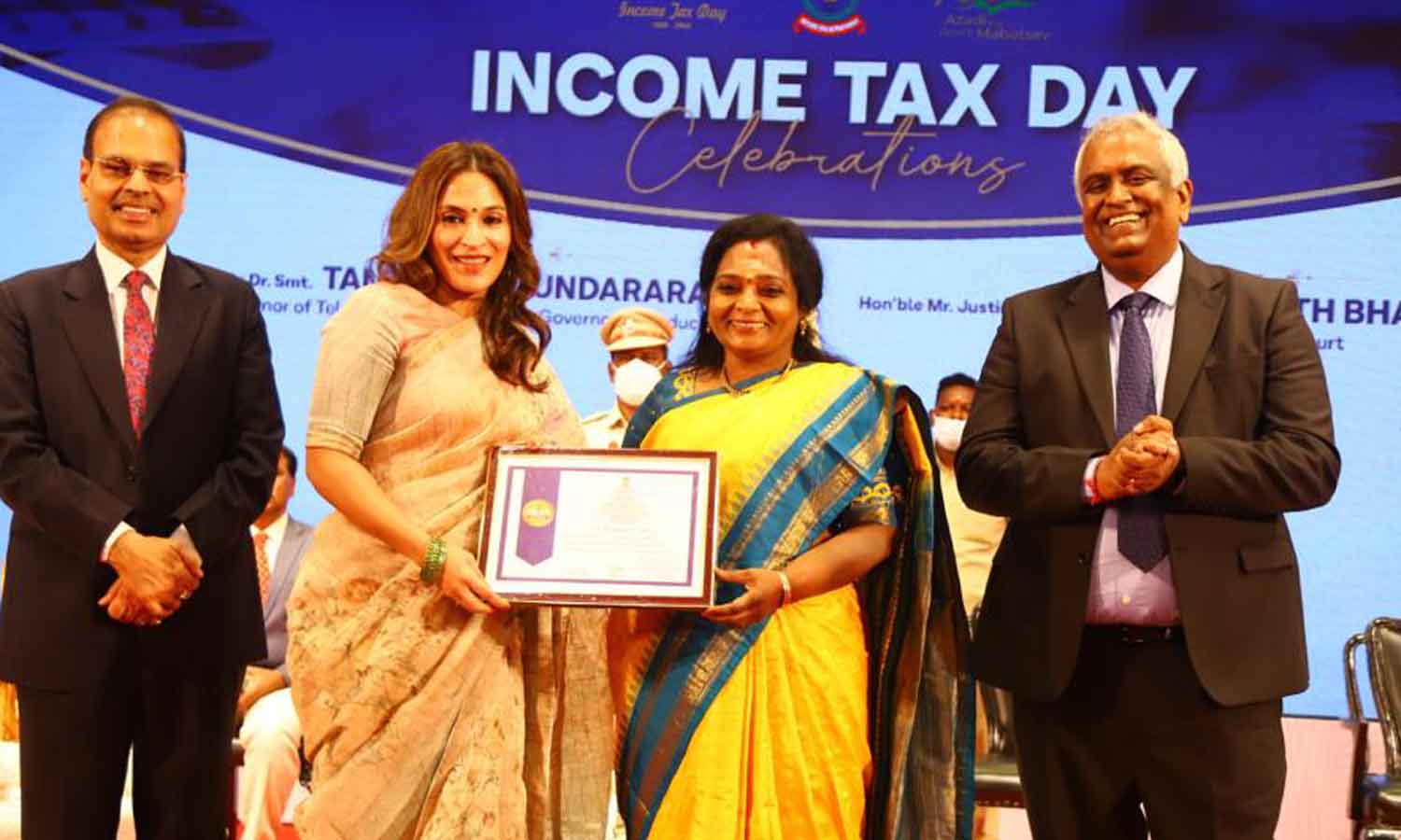 - தமிழகம்-புதுவை அளவில் அதிக வருமான வரி செலுத்தியவர்களுக்கு விருது வழங்கும் விழா நடைபெற்றது