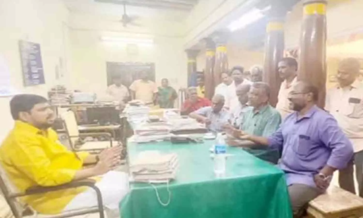 மின்துறை அதிகாரியிடம் பிரகாஷ் குமார் எம்.எல்.ஏ. ஆலோசனை நடத்திய காட்சி.