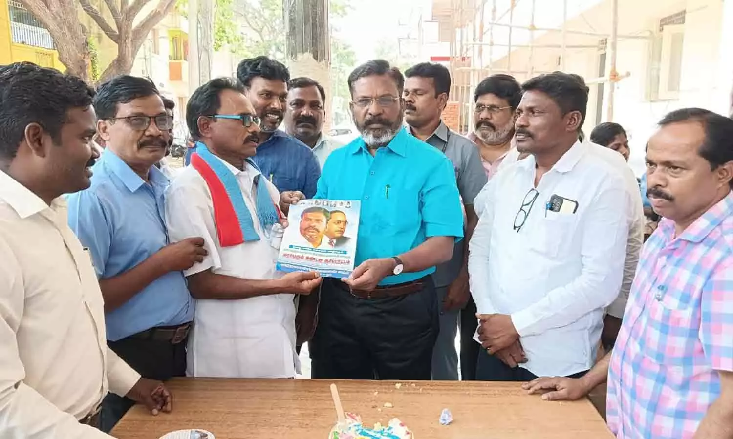 போராட்ட அழைப்பை திருமாவளவனிடம் புதுவை விடுதலை சிறுத்தைகள் கட்சியினர் வழங்கினர்.