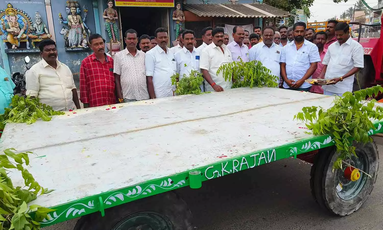 இந்த வாகனத்தை தனது சொந்த நிதியில் வழங்கிய ஜி.கே.ஆர் ரியல் எஸ்டேட் மற்றும் கன்ஸ்ட்ரக்ஷன் உரிமையாளர் ஜி.கே ராஜனுக்கு கோயிலில் பரிவட்டம் கட்டி முதல் மரியாதை செய்யப்பட்டது.
