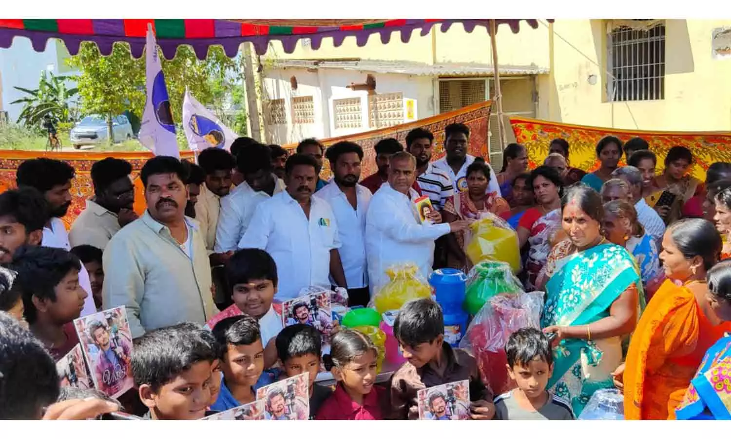 - ஆயிரம் பேருக்கு மதிய உணவு, பொதுமக்களுக்கு இனிப்பு, நீர் மோர் ஆகியவற்றையும் அவர் வழங்கினார்.