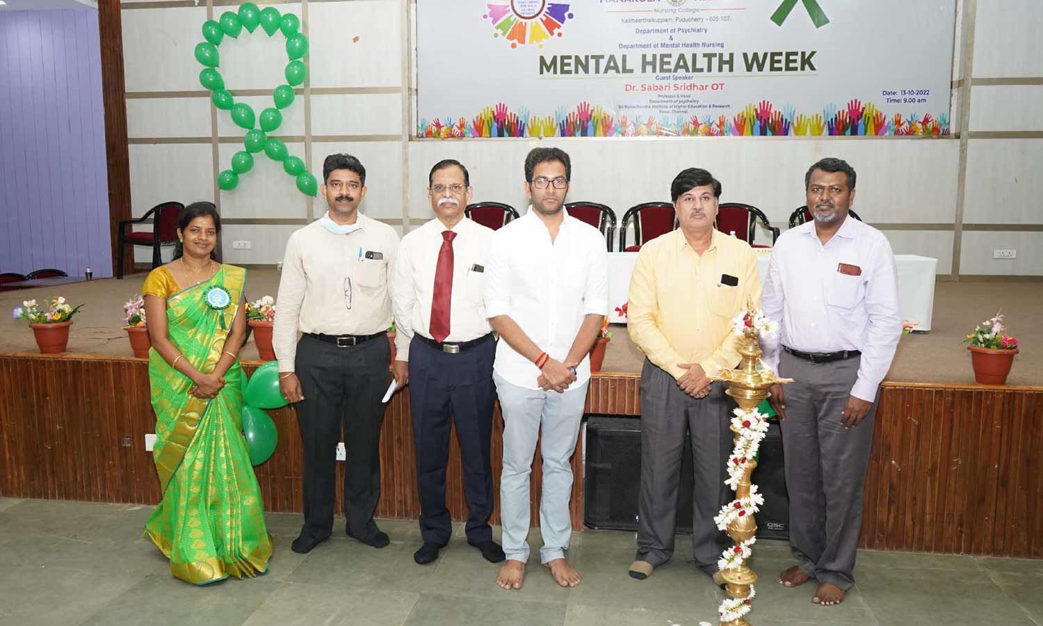 உலக மனநல வார விழா வை முன்னிட்டு புதுவை மணகுள விநாயகர் மருத்துவகல்லூரி மற்றும் மருத்துவமனையும், மனநல செவிலியர் துறையும், செவிலியர் கல்லூரியும், மனநல செவிலியர் துறையும் இணைந்து உலக மனநல வாரவிழா கொண்டாடியது.