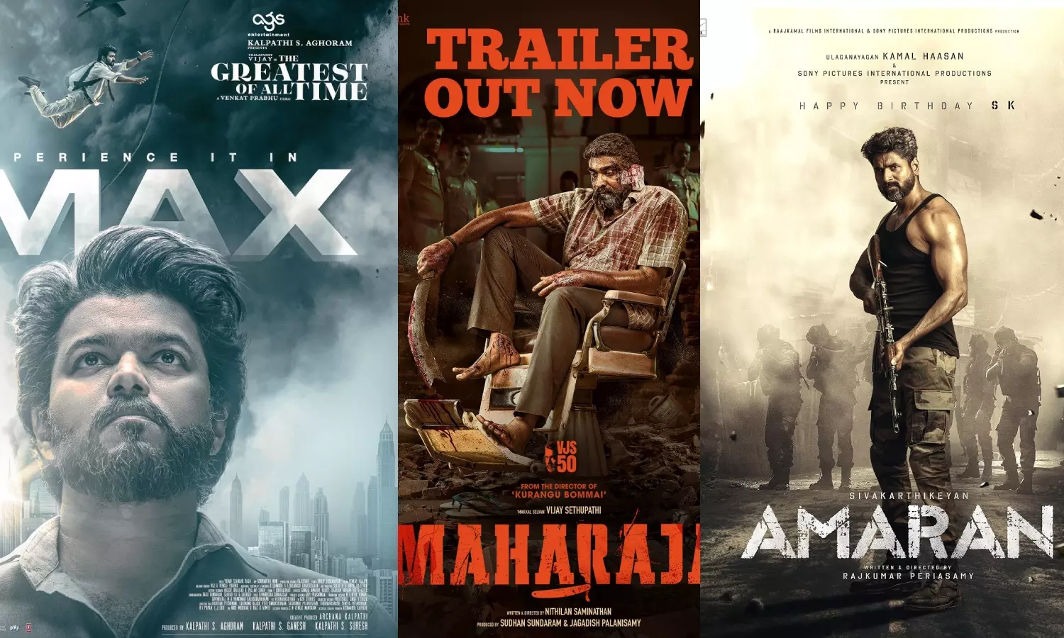 முதல் இடத்தை பிடித்து இருப்பது வழக்கம் போல விஜய் நடிப்பில் வெளியான தி கிரேட்டஸ்ட் ஆஃப் ஆல் டைம் { தி கோட்} திரைப்படம். இப்படத்தை வெங்கட் பிரபு இயக்கினார். பிரஷாந்த், பிரபு தேவா, ஜெயராம், மீனாட்சி சவுத்ரி என பலர் நடித்துள்ளனர். இப்படத்தில் திரிஷா ஒரு பாடலுக்கு நடனமாடியது கூடுதல் சிறப்பாகும். திரைப்படம் வெளியாகி மக்களிடையே பெரும் வரவேற்பை பெற்றது. இத்திரைப்படம் உலகமுழுவதும் 460 கோடி ரூபாய் வசூலித்து 2024 ஆம் ஆண்டு வெளியான தமிழ் திரைப்படங்களில் முதல் இடத்தை பிடித்துள்ளது.