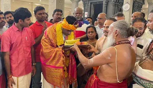 இங்கிலாந்து தலைநகர் லண்டனுக்கு, அண்ணாமலை சென்னையில் இருந்து நேற்று புறப்பட்டார். இந்நிலையில், லண்டன் சென்றடைந்த அண்ணாமலை அங்குள்ள முருகன் கோவிலில் சாமி தரிசனம் செய்தார். அண்ணாமலைக்கு அங்கு பரிவட்டம் கட்டி, மாலை அணிவித்து மரியாதை செய்யப்பட்டது.