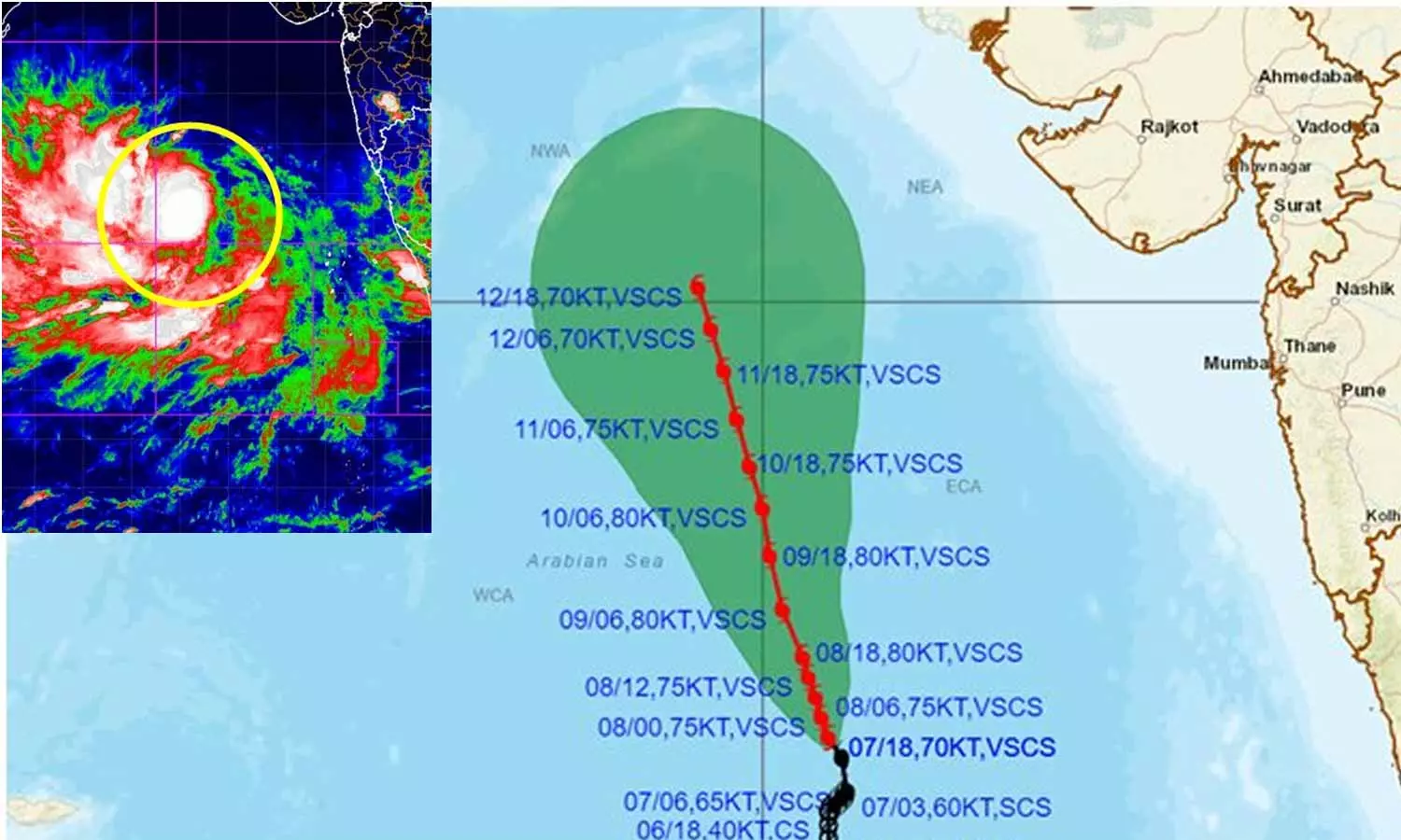 அரபிக்கடலில் உருவான பிபோர்ஜோய் புயல் அதி தீவிர புயலாக வலுவடைந்தது உள்ளது. இன்று காலை நிலவரப்படி, கோவாவில் இருந்து 870 கிமீ மேற்கு-தென்மேற்கு திசையிலும், மும்பையில் இருந்து 930 கிமீ தென்மேற்கிலும் புயல் மையம் கொண்டிருந்தது. அடுத்த 48 மணிநேரத்தில் புயல் படிப்படியாக மேலும் தீவிரமடைந்து, அடுத்த 3 நாட்களில் வடக்கு-வடமேற்கு நோக்கி நகரும் என்றும் வானிலை ஆய்வு மையம் தெரிவித்துள்ளது. இதன் காரணமாக மேற்கு கடலோர மாநிலங்களில் கனமழைக்கு வாயப்பு உள்ளது.