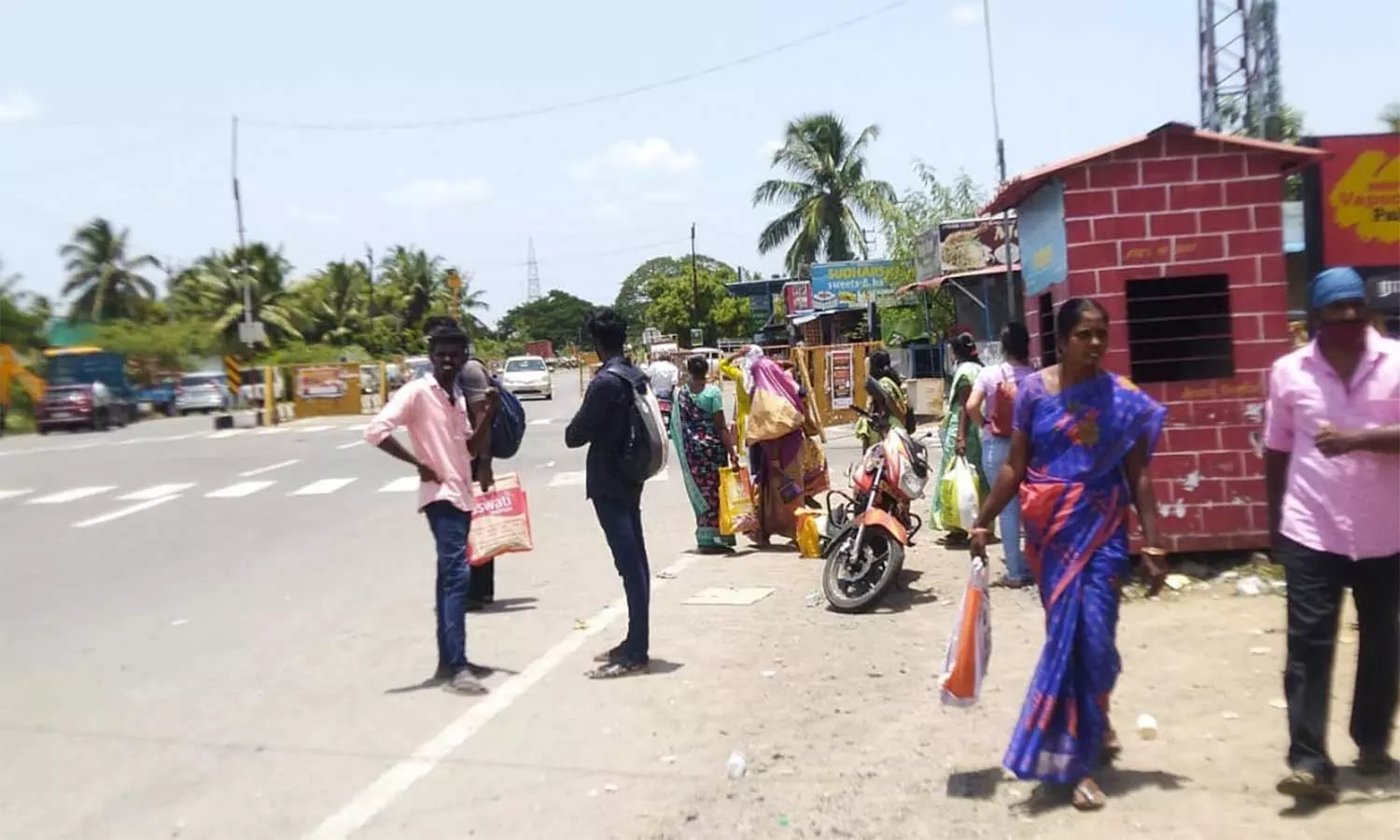 கல்பாக்கம் அருகே உள்ள வெங்கம்பாக்கம் கிழக்கு கடற்கரை சாலை பஸ் நிறுத்தத்தில் நிழல்குடை இல்லாமல் பயணிகள் அவதிப்பட்டு வருகின்றனர்.
