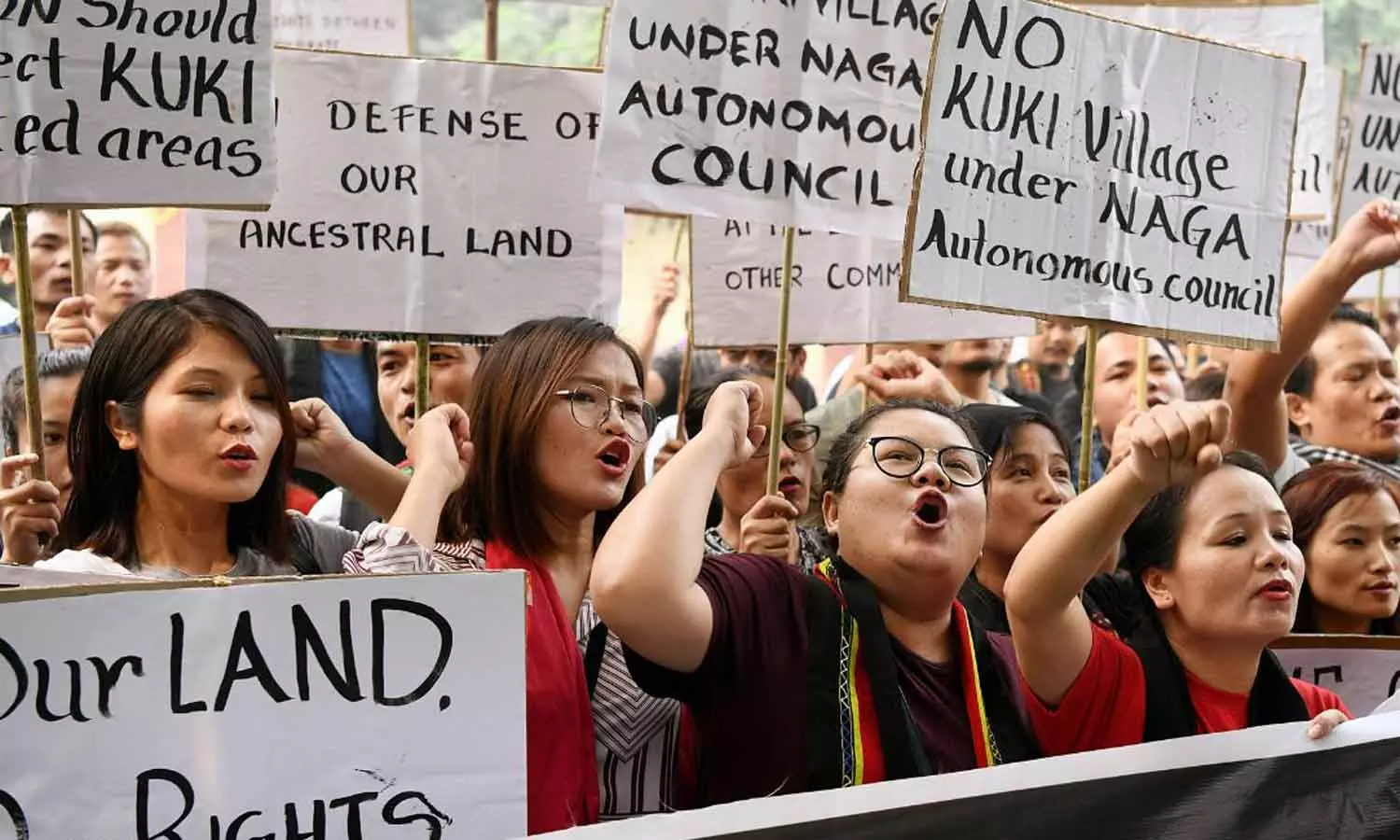 மணிப்பூர் வன்முறை சம்பவத்தை தொடர்ந்து குகி சமூகத்தினர் டெல்லியில் உள்ள மத்திய மந்திரி அமித் ஷா வீட்டு முன்பு இன்று போராட்டத்தில் ஈடுபட்டனர்.