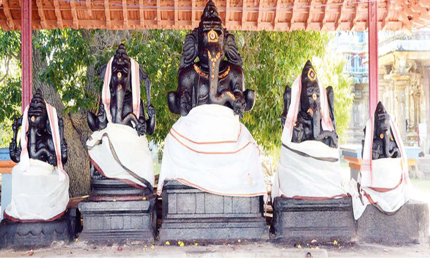 இங்கு ஐந்து பிள்ளையார் சிலைகள் ஒரே வரிசையில் அமைந்துள்ளது. ஒவ்வொரு யுகத்திலும் ஒரு பிள்ளையார் எனவும், நடுவில் மூலவ பெரிய பிள்ளையார் எனவும் கூறப்படுகிறது. 'ஆகண்டல விநாயகர்' என்ற பெயரில் தனிச் சன்னிதியிலும் விநாயகர் வீற்றிருக்கிறார். அந்த சன்னிதியில் சுரங்கப்பாதை அமைத்து 13 கிலோமீட்டர் தூரத்தில் உள்ள தீர்த்த தாண்டதானம் எனும் ஊரில் இருந்து சுந்தரபாண்டிய மன்னர் வந்து வழிபாடு நடத்தியதாக கூறப்படுகிறது. அந்த சுரங்கப்பாதை இருந்த இடம் தற்போது மூடப்பட்டுள்ளது.
