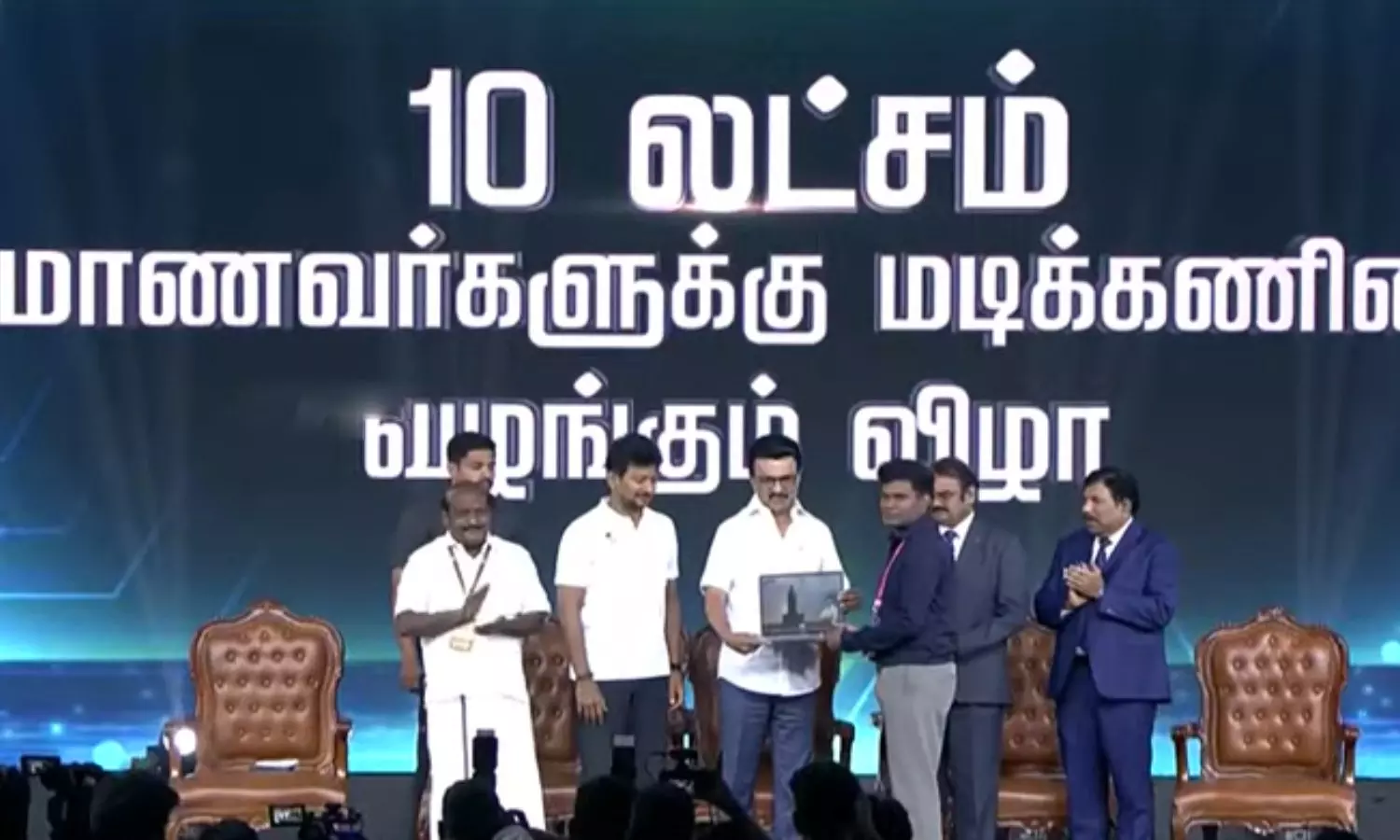 மாணவர்களுக்கு மடிக்கணினி வழங்கும் முதலமைச்சர் மு.க.ஸ்டாலின்