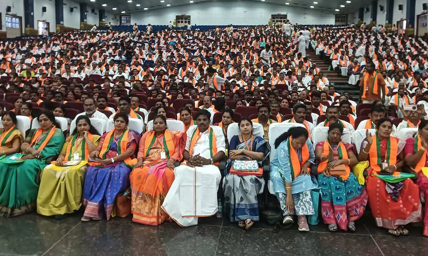 இந்த நிலையில் இன்று செங்கல்பட்டு மாவட்டம் காட்டாங்கொளத்தூரில் உள்ள எஸ்.ஆர்.எம். பல் கலைக்கழகத்தில் பா.ஜ.க. பூத் கமிட்டியை வலுப்படுத்தும் ஆலோசனை கூட்டம் நடைபெற்றது. இந்த நிகழ்ச்சியில் தமிழகம் முழுவதும் இருந்து ஆயிரக்கணக்கான கட்சி நிர்வாகிகள் பங்கேற்றனர்.