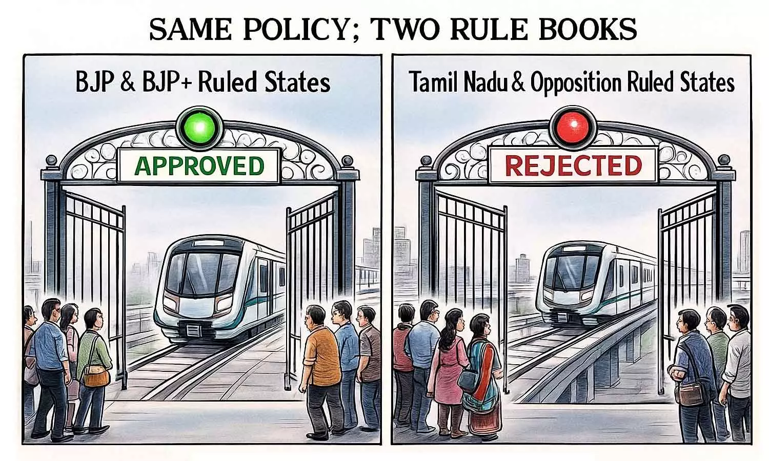அனைவருக்கும் பொதுவானதாகச் செயல்படுவதுதான் அரசுக்கான இலக்கணம். அதற்கு மாறாக, பா.ஜ.க.வைத் தமிழ்நாட்டு மக்கள் நிராகரிப்பதற்காக இப்படி பழிவாங்குவது கீழ்மையான போக்கு. பா.ஜ.க. ஆளும் மாநிலங்களில் உள்ள சிறிய இரண்டாம் நிலை மாநகரங்களுக்குக் கூட மெட்ரோ ரெயிலுக்கான ஒப்புதல் வழங்கிவிட்டு, எதிர்க்கட்சிகள் ஆளும் மாநிலங்களைப் புறக்கணிப்பது அழகல்ல. கூட்டாட்சிக் கருத்தியலை இப்படி சிதைப்பதைச் சுயமரியாதைமிக்க மண்ணான தமிழ்நாடு ஒருபோதும் ஏற்றுக்கொள்ளாது.