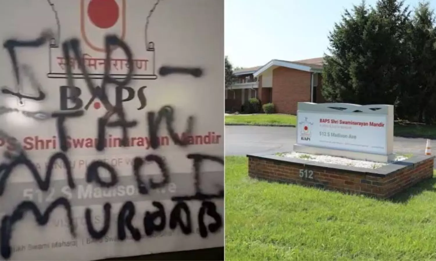 கலிபோர்னியாவின் நியூவார்க் நகரில் உள்ள புகழ்பெற்ற ஸ்ரீ சுவாமிநாராயண் கோவிலில் தாக்குதல் நடத்தப்பட்டது.