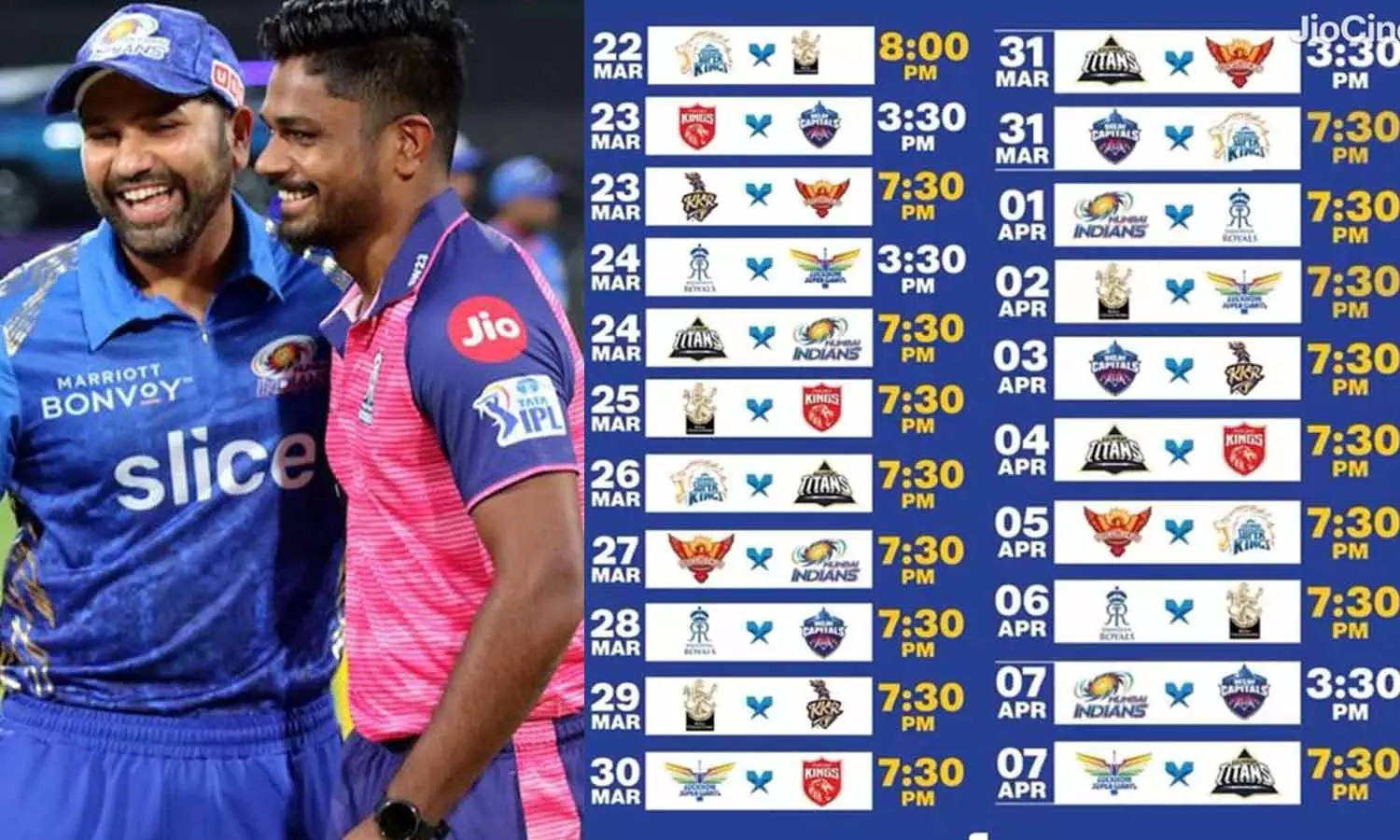 முதல் போட்டியில் சென்னை சூப்பர் கிங்ஸ் அணியும் பெங்களூரு அணியும் மோதுகிறது. இதனை தொடர்ந்து சென்னை அணி மார்ச் 26-ந் தேதி குஜராத் அணியுடன் மோதுகிறது. இந்த 2 போட்டிகளும் சென்னை சேப்பாக்கம் மைதானத்தில் நடைபெறுகிறது. அதனை தொடர்ந்து சென்னை அணி மார்ச் 31-ந் தேதி டெல்லியுடனும் ஏப்ரல் 5-ந் தேதி சன்ரைசர்ஸ் அணியுடனும் மோதுகிறது.