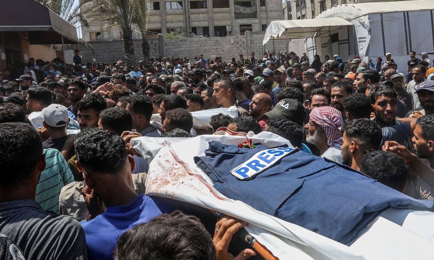 தெற்கு காசாவின் கான் யூனிஸில் உள்ள நாசர் மருத்துவமனையின் மீது நேற்று இஸ்ரேல் நடத்திய வான்வழித் தாக்குதலில் 5 பத்திர்கையாளர்கள் உட்பட 20 பேர் கொல்லப்பட்டனர்.