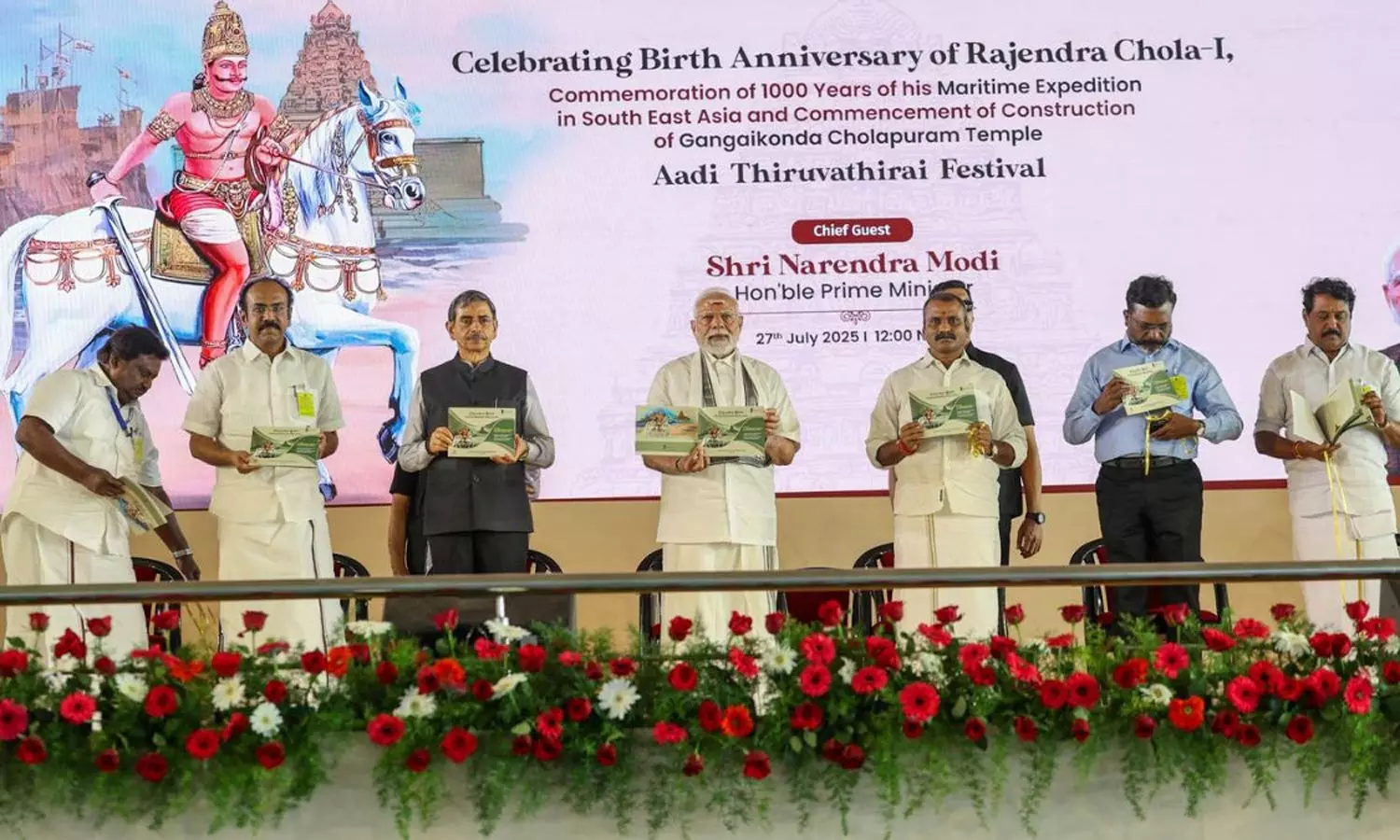 ராஜராஜ சோழனும், அவரது மகன் ராஜேந்திர சோழனும் இந்தியாவின் அடையாளம் மற்றும் பெருமைக்குரியவர்கள். சோழரசின் வரலாறு மற்றும் பாரம்பரியம் நாட்டின் வலிமையும், திறனையும் பிரதிபலிக்கிறது. சோழர்களின் காலம் இந்திய வரலாற்றில் பொற்காலமாகும். ராஜேந்திர சோழன் கட்டிய கங்கைகொண்ட சோழபுரம் பிரகதீஸ்வரர் கோவில், உலகம் முழுவதும் கட்டிடக் கலையின் அதிசயமாக பார்க்கப்படுகிறது.