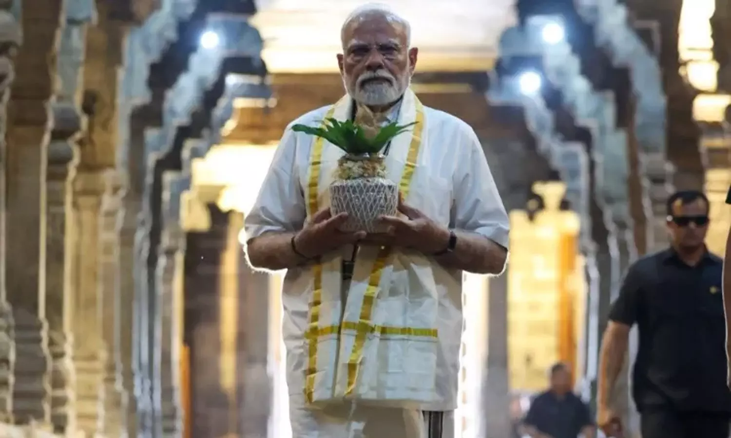 அங்கிருந்து கோவிலுக்கு வந்த பிரதமர் மோடிக்கு பூரண கும்பமரியாதை அளிக்கப்பட்டது. தொடர்ந்து, கலாச்சாரத்துறை சார்பில் அமைக்கப்பட்டிருந்த புகைப்படக் கண்காட்சியையும், சிற்பங்களையும் பார்வையிட்டார்.