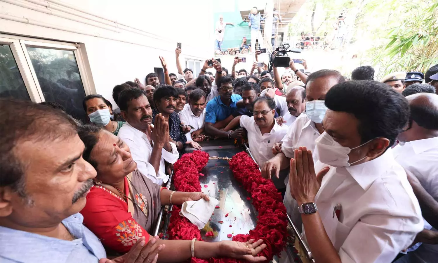 அப்போது தமிழக முதலமைச்சர் மு.க. ஸ்டாலின் அவரது இல்லத்திற்கு வருகை தந்து, அவரது உடலுக்கு அஞ்சலி செலுத்தினார். அப்போது அமைச்சர் மா.சுப்பிரமணியன் உடனிருந்தார்.
