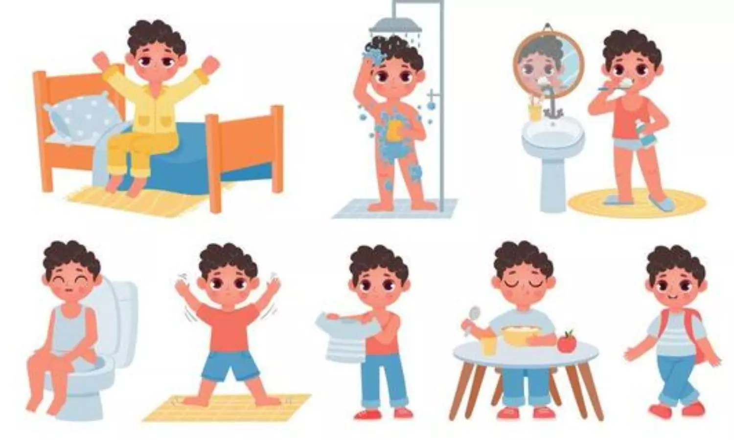 குழந்தைகளின் காலை நேர ரொட்டீனின் மாதிரிப் படம்