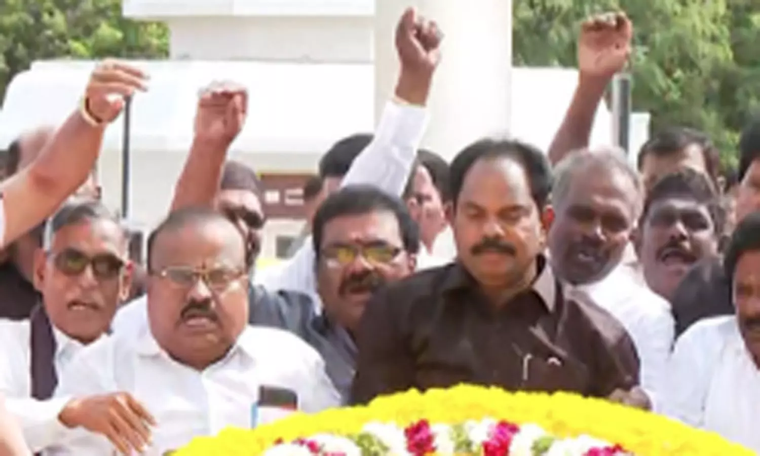 தனது போராட்டத்தை தொடங்கும் முன்னர் அண்ணா, கலைஞர் நினைவிடங்களில் மல்லை சத்யா மரியாதை செலுத்தினார்.
