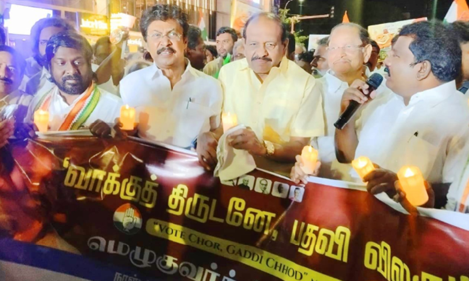 இதனைத் தொடர்ந்து இந்த பிரசாரத்தில் முதல்கட்டமாக நேற்று தமிழ்நாடு காங்கிரஸ் கமிட்டி சார்பில் சென்னை ராயப்பேட்டை மணிக்கூண்டில் இருந்து தமிழ்நாடு காங்கிரஸ் கமிட்டி தலைமை அலுவலகமான சென்னை சத்யமூர்த்தி பவன் வரை மெழுகுவர்த்தி ஏந்தி கண்டன ஊர்வலம் நடைபெற்றது