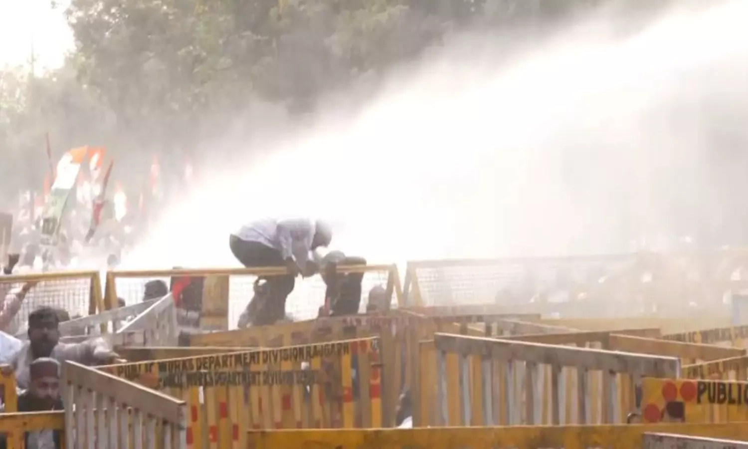 இந்த ஆர்ப்பாட்டம் விரைவில் வன்முறையாக மாறியது. போராட்டக்காரர்கள் தடுப்புகளில் ஏறியதையடுத்து, கூட்டத்தைக் கலைக்க காவல்துறை தண்ணீரை பீய்ச்சி அடித்தனர். இதனால் அங்கு பரபரப்பான சூழல் நிலவியது.
