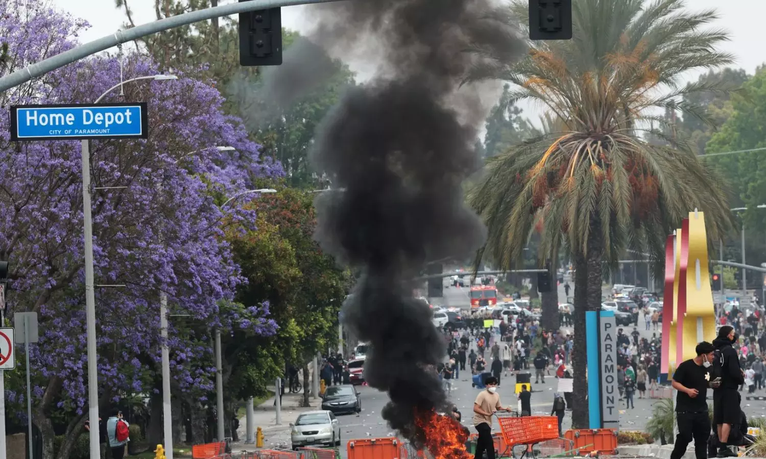இதற்கிடையே அதிபர் டிரம்பின் நடவடிக்கையை கண்டித்து கலிபோர்னியா மாகாணம் லாஸ் ஏஞ்சல்ஸ் நகரில் நடந்த போராட்டத்தில் கலவரம் வெடித்தது. இதில் ஏராளமான வாகனங்களுக்கு தீ வைக்கப்பட்டது. வணிக வளாகங்கள் சூறையாடப்பட்டன.