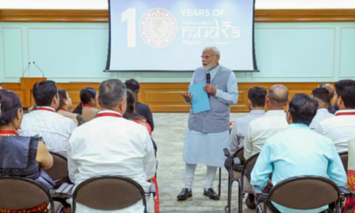 முத்ரா யோஜனாவின் 10 ஆண்டுகள் நிறைவையொட்டி பயனாளிகள் இன்று பிரதமரின் இல்லத்திற்கு அழைக்கப்பட்டு கலந்துரையாடல் நிகழ்ச்சி நடந்தது. பயனாளிகளிடம் மோடி கலந்துரையாடலில் ஈடுபட்டார்.