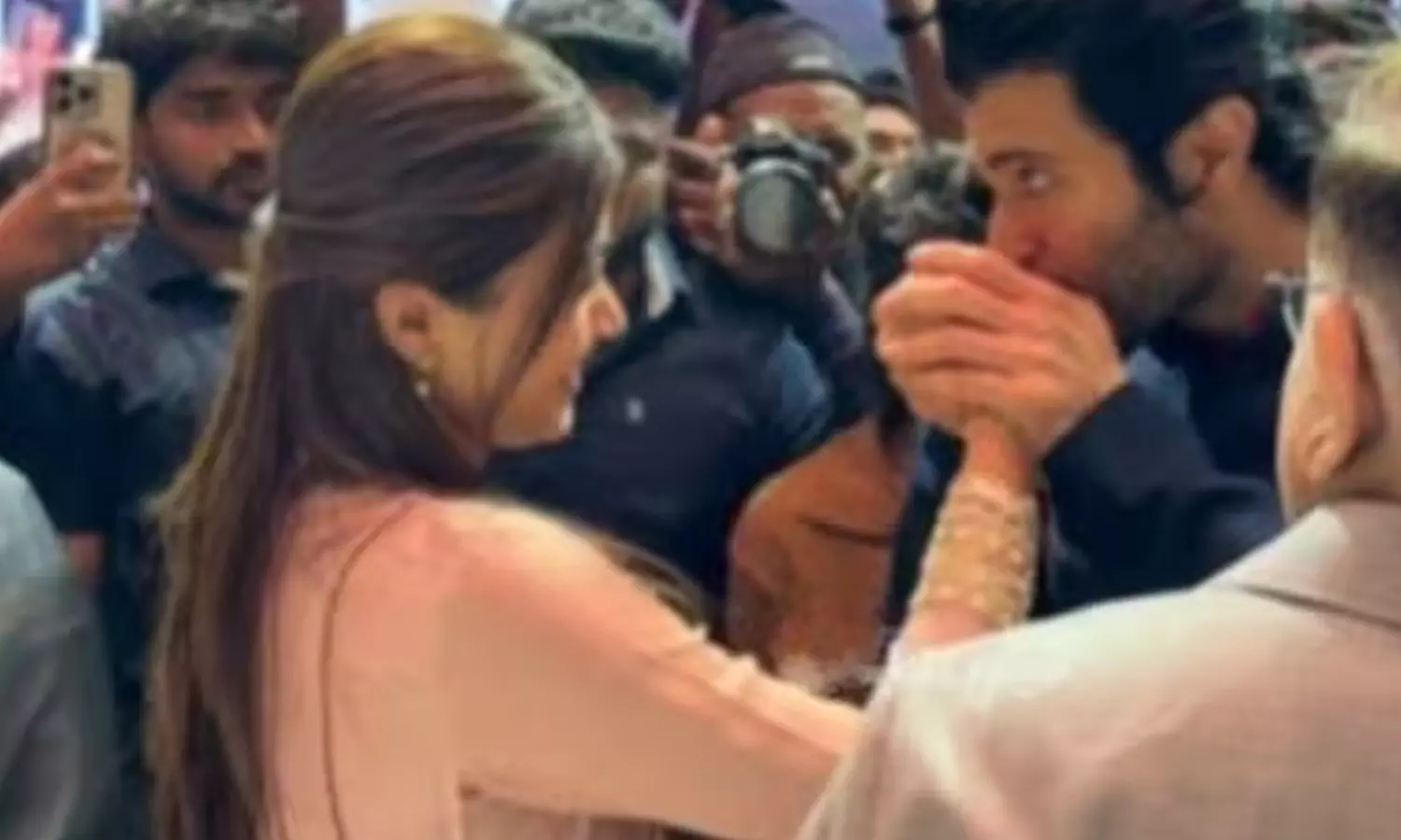 முன்னதாக, நிகழ்ச்சியில் பங்கேற்க வந்த விஜய் தேவரகொண்டா, ராஷ்மிகாவுடன் கைகுலுக்கும் போது அவரது கையை பிடித்து முத்தமிட்டது தொடர்பான வீடியோவும் சமூக வலைத்தளங்களில் வைரலாகி வருகிறது.