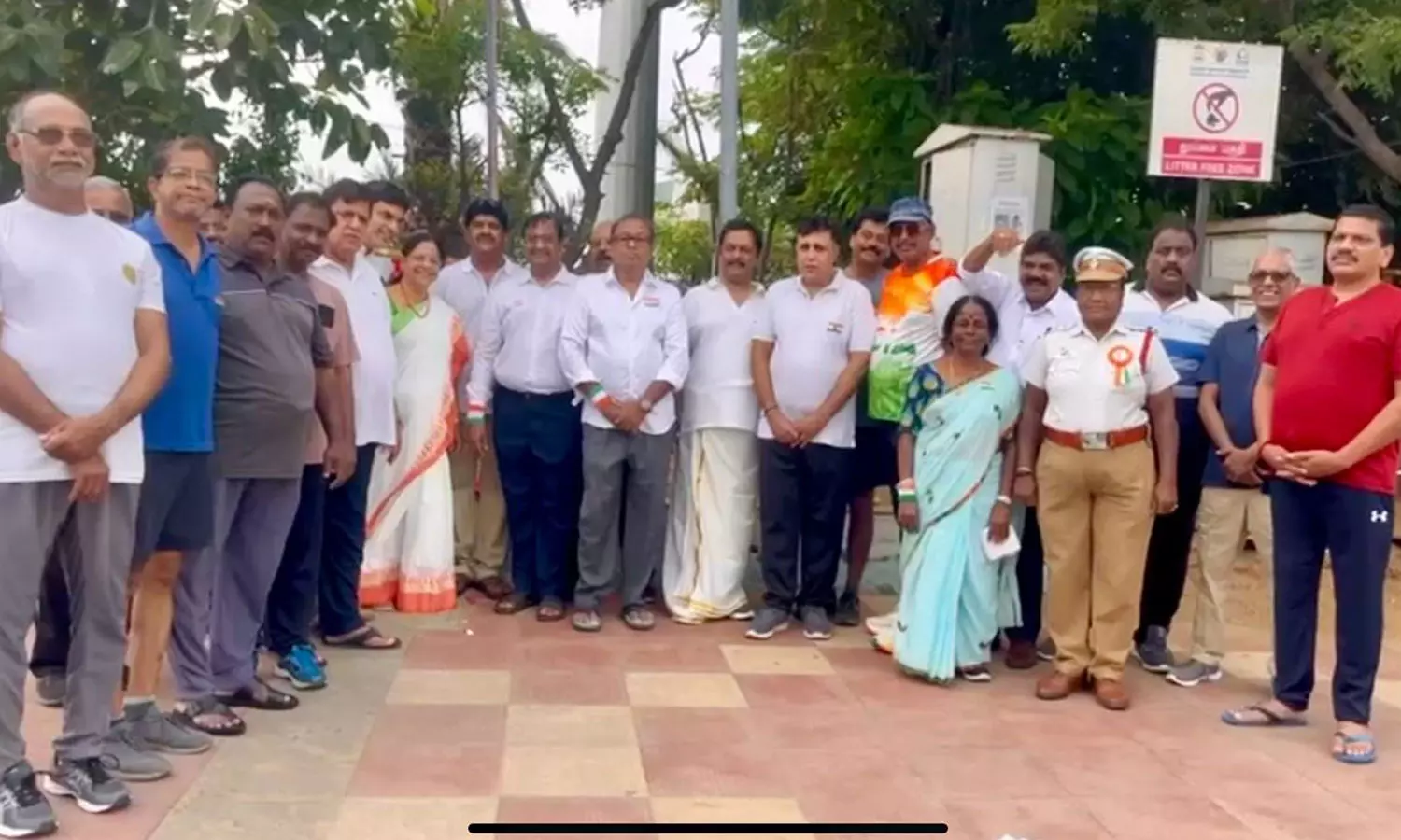 பெசன்ட் நகர் எலைட் பீச்சில் டாக்டர் பிரகாஷ் தலைமையில் நடைபெற்ற நிகழ்ச்சியில், சென்னை கண் மருத்துவமனை (Chennai Eye Care Hospital) மருத்துவ இயக்குநர் டாக்டர் மனோகர் பாபு தேசியக் கொடி ஏற்றி வைத்தார்.