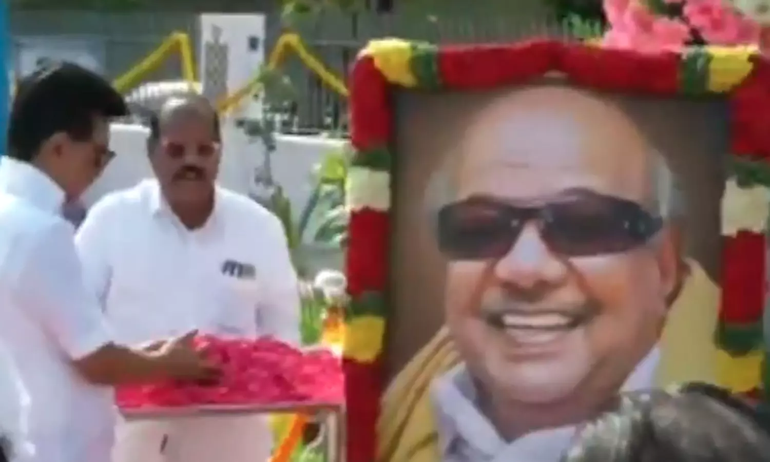 இதையொட்டி சென்னை அண்ணா சாலையில் உள்ள ஓமந்தூரார் அரசினர் தோட்ட வளாகத்தில் உள்ள கருணாநிதியின் முழு உருவ சிலை அருகே அவரது உருவப்படம் மலர்களால் அலங்கரித்து வைக்கப்பட்டிருந்தது.