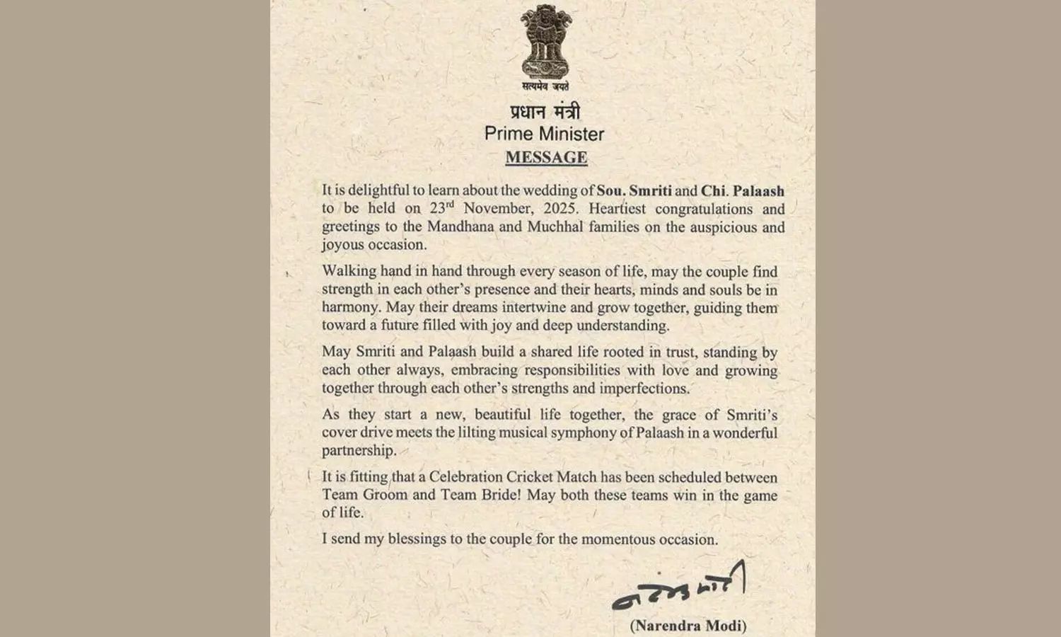 - பிரதமர் மோடி இரு வீட்டாருக்கும் வாழ்த்து கடிதம் அனுப்பினார்.