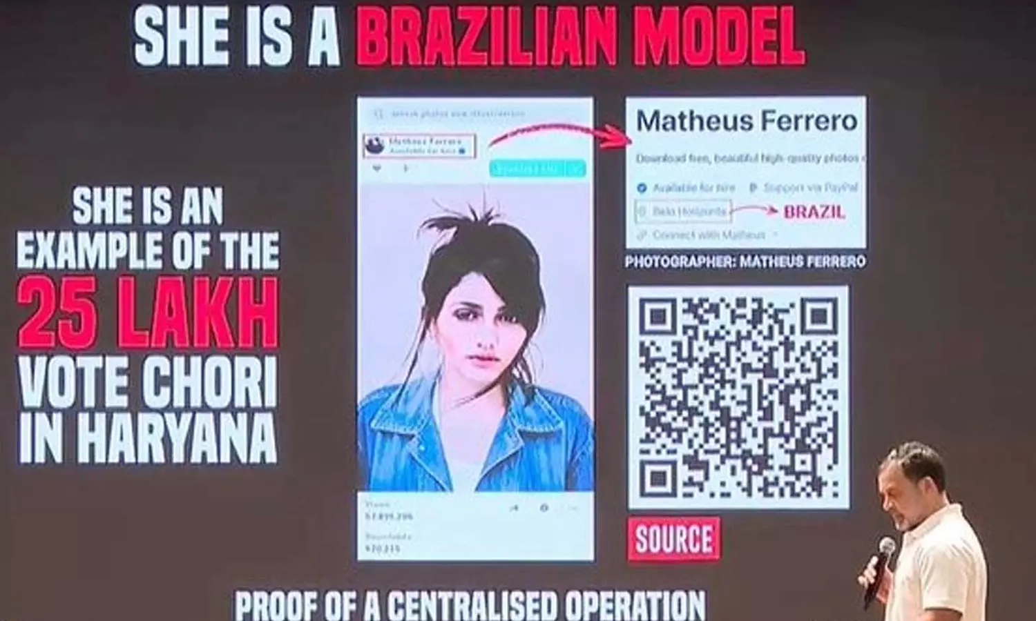 பிரேசிலை சேர்ந்த மாடல் அழகி ஒருவரின் புகைப்படம் (அவரின் புகைப்படத்தையும் ராகுல் காந்தி வெளியிட்டார்) ராய் சட்டசபை தொகுதி வாக்காளர் பட்டியலில் 10 வாக்குச்சாவடிகளில் 22 இடங்களில் இடம்பெற்று இருக்கிறது என்று மக்களவை எதிர்க்கட்சி தலைவர் ராகுல் காந்தி குற்றம் சாட்டி இருந்தார்.