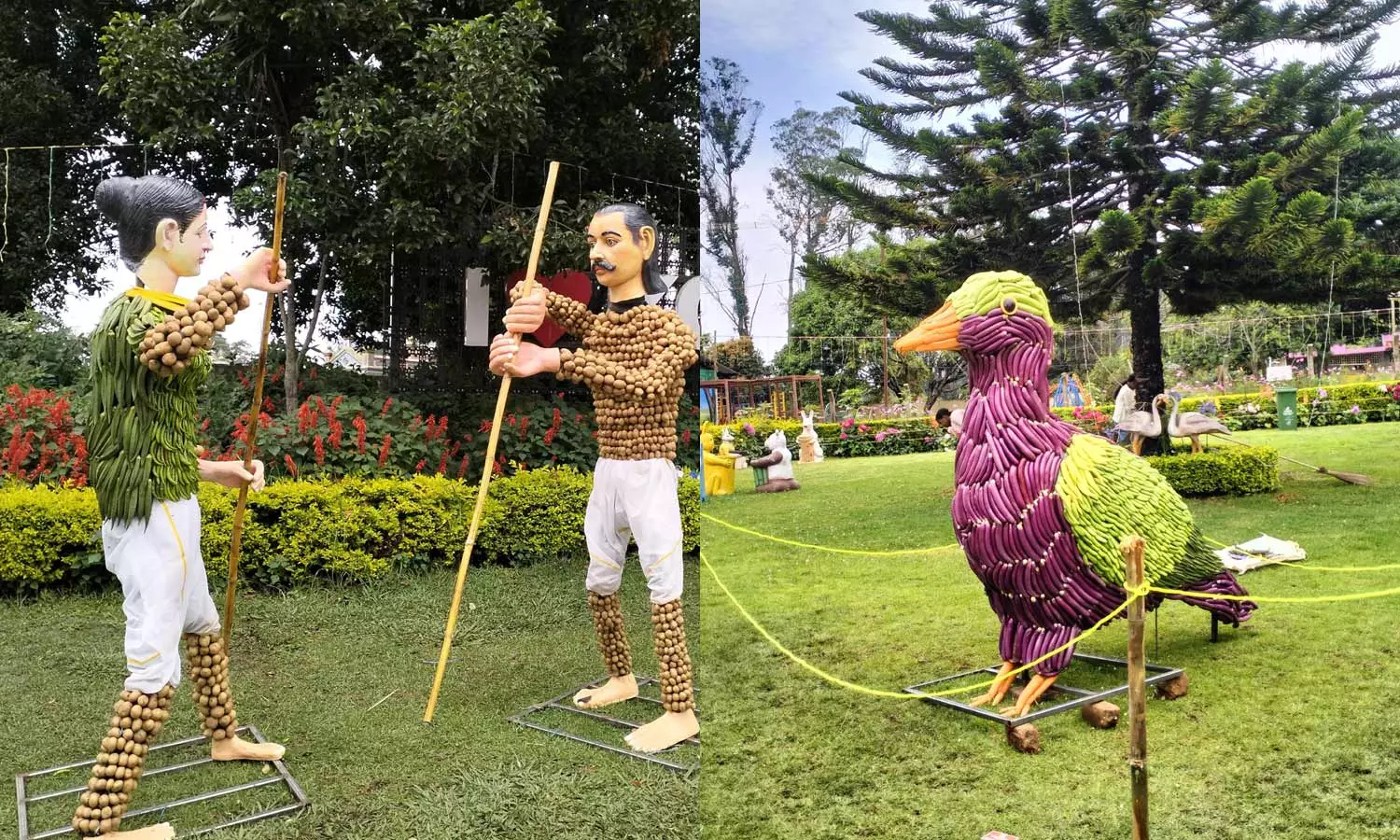 மேலும் 250 காய்கறிகள் மூலம் வரையாடு, கோடை விழா சின்னமாக விளங்கும் இருவாச்சி பறவை, சிங்கவால் குரங்கு ஆகிய உருவங்களும் இடம் பெற்றுள்ளன. இதனை சுற்றுலா பயணிகள் கண்டு ரசித்தனர்.