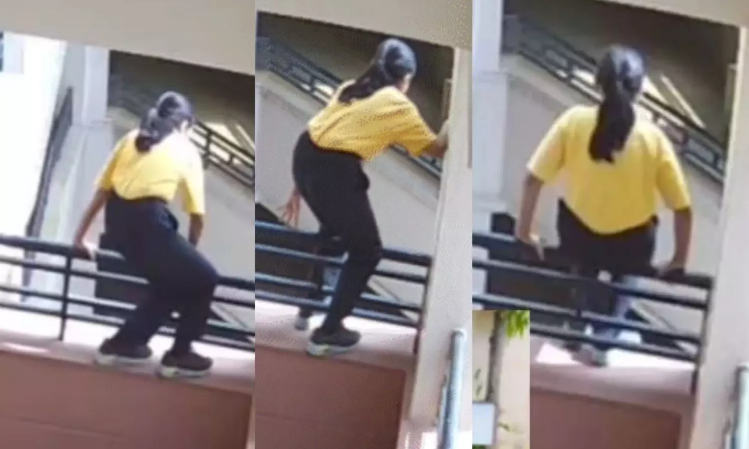 சிறுமி பள்ளியின் 4வது மாடிக்கு சென்று அங்கிருந்து கீழே குதித்த வீடியோ சமூக வலைதளத்தில் வெளியாகி அதிர்ச்சியை ஏற்படுத்தி வருகிறது. இந்த சம்பவம் தொடர்பாக போலீசார் தொடர்ந்து விசாரணை நடத்தி வருகின்றனர்.