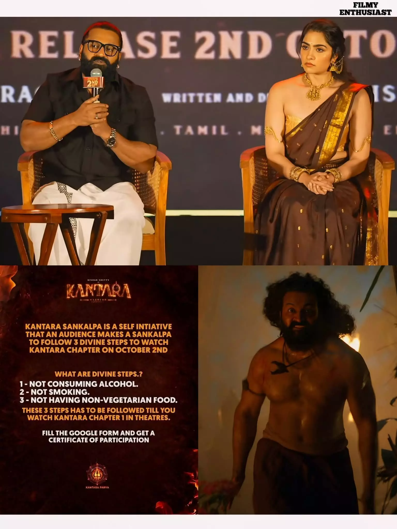 அந்த போஸ்டரில், "காந்தாரா படத்தை பார்க்க விரும்புவோர் அப்படத்தை பார்க்கும் வரை கீழ்கண்ட 3 விஷயங்களை கடைபிடிக்க வேண்டும்.