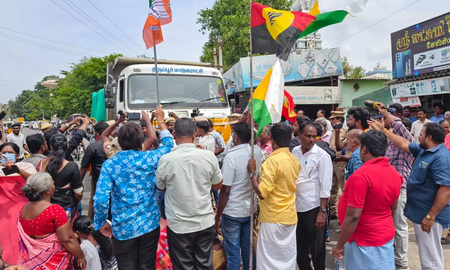 - அனைத்து கட்சியினர் மற்றும் பொதுமக்கள் திடீரென சாலையில் அமர்ந்து மறியல் போராட்டத்தில் ஈடுபட்டனர்.