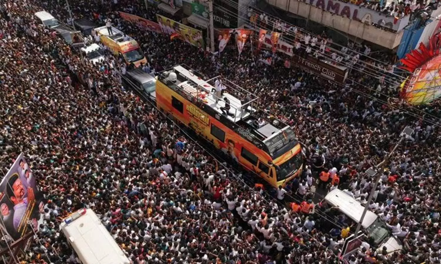 தமிழ்நாட்டில் புதிதாக கட்சி தொடங்கிய விஜய், சட்டசபை தேர்தலை எதிர்நோக்கி மக்கள் சந்திப்பு என்ற அரசியல் பரப்புரை கூட்டங்களை நடத்தி வந்தார். அதன்படி, 27-ந்தேதி சனிக்கிழமை மதியம் கரூர் மாவட்டம் வேலுசாமிபுரத்தில் தமிழக வெற்றிக்கழகத்தின் பரப்புரை கூட்டத்திற்கு ஏற்பாடு செய்யப்பட்டு இருந்தது. விஜய் பங்கேற்று பொதுமக்களிடையே உரையாற்றுவதை காண காலை முதலே மக்கள் கூட்டம் நடைபெறும் இடத்திற்கு பொதுமக்கள் குவியத் தொடங்கினர்.