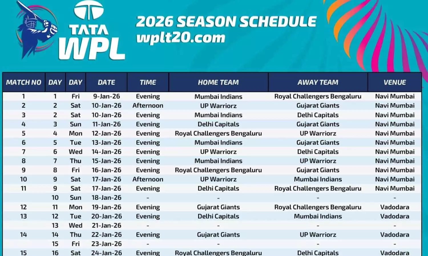 அதன்படி மகளிர் பிரிமீயர் லீக் தொடர் அடுத்த ஆண்டு ஜனவரி 9-ந் தேதி தொடங்கி பிப்ரவரி 5-வரை நடைபெறுகிறது. இந்த தொடர் நவி மும்பை மற்றும் வதோதராவில் நடக்கவுள்ளது.