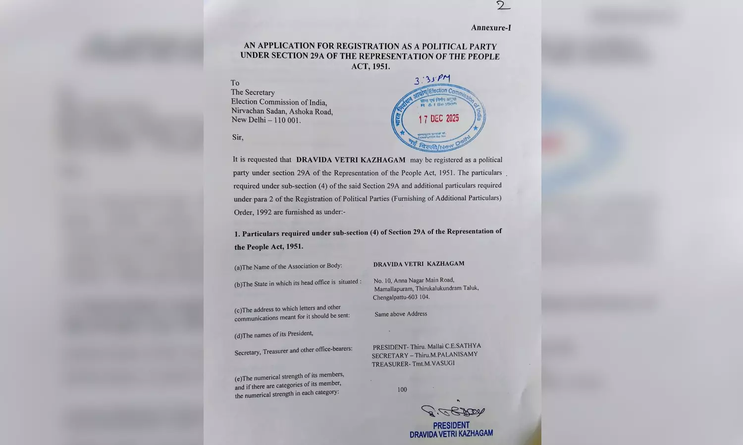 இந்நிலையில், திராவிட வெற்றி கழகம் கட்சியை தேர்தல் ஆணையத்தில் மல்லை சத்யா பதிவு செய்துள்ளார்.