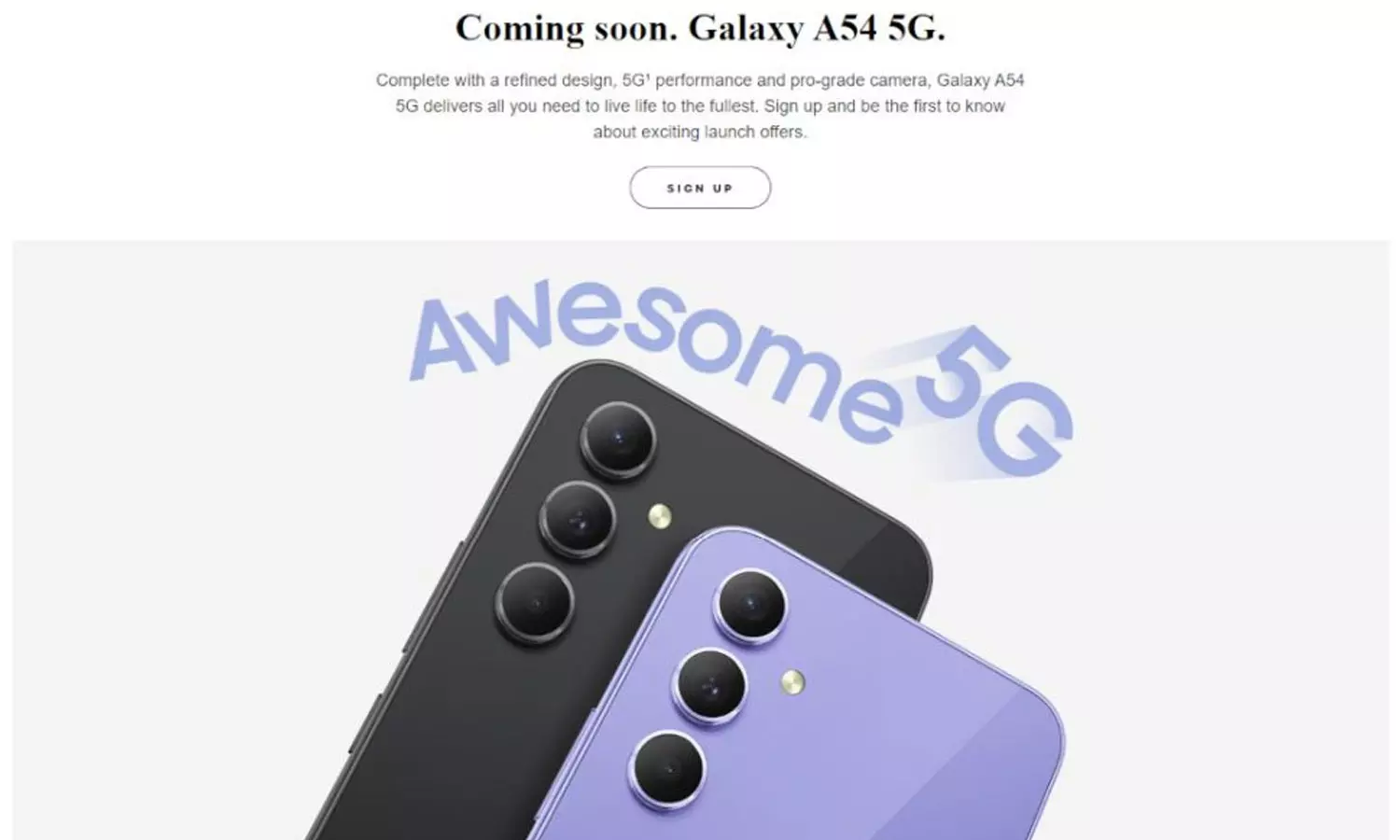 சாம்சங் நிறுவனம் தனது கேலக்ஸி A54 5ஜி ஸ்மார்ட்போனின் டீசரை வலைத்தளத்தில் வெளியிட்டு இருக்கிறது. ஸ்மார்ட்போன் வெளியீடு, அம்சங்கள் மற்றும் சலுகை பற்றிய விவரங்களை அறிந்து கொள்ள பயனர்கள் வலைத்தளத்திற்கு சைன்-அப் செய்ய சாம்சங் கோரிக்கை விடுக்கிறது. எனினும், இந்த வலைப்பக்கம் முழுமையாக செயல்பாட்டுக்கு வரவில்லை.