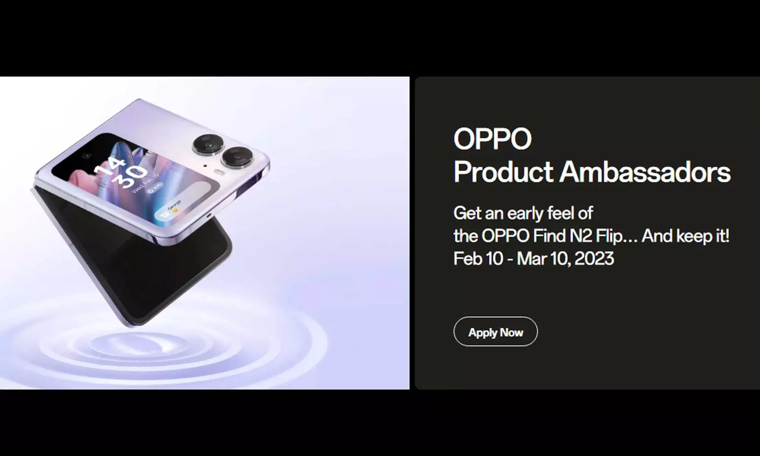இதற்கான விண்ணப்பங்கள் மார்ச் 10, ஆம் தேதி நள்ளிரவு 11.59 மணி வரை சமர்பிக்க முடியும். இதில் தேர்வு செய்யப்படும் Product Ambassador-களுக்கு ஒப்போ ஃபைண்ட் N2 ஃப்ளிப் ஸ்மார்ட்போன் அனுப்பப்படும். பின் டெஸ்டிங் நிறைவு பெற்றதும், ஒப்போ ஃபைண்ட் N2 ஃப்ளிப் யூனிட்டை அப்படியே வைத்துக் கொள்ளலாம். இந்த திட்டத்தில் விண்ணப்பிக்க கடைசி தேதி ஏற்கனவே அறிவிக்கப்பட்டு விட்டது. அந்த வகையில், ஃபைண்ட் N2 ஃப்ளிப் வெளியீடு விரைவில் நடைபெறுகிறது.