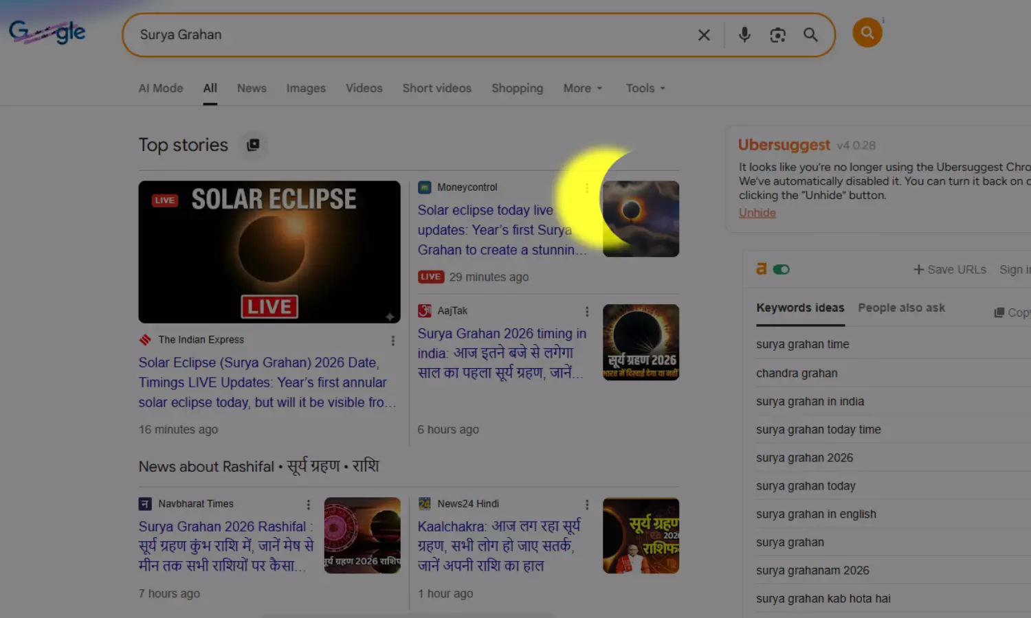 பயனர்கள் "solar eclipse," "Surya Grahan," போன்ற முக்கிய வார்த்தைகளை தேடும் போது கூகுள் தேடல் பட்டியில் தட்டச்சு செய்வதன் மூலம் அனிமேஷனை காணலாம். முடிவுகள் ஏற்றப்பட்டதும், சூரியன் முழுவதும் சந்திரனின் இயக்கத்தை உருவகப்படுத்தும் ஒரு கிராஃபிக் திரையில் தோன்றும். இன்றைய கிரகணம் வளைய வடிவமானது என்பதால், அனிமேஷன் தனித்துவமான "நெருப்பு வளையம்" விளைவை எடுத்துக்காட்டுகிறது.