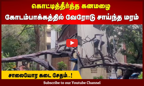 Chennai Rains | கொட்டித்தீர்த்த கனமழை | கோடம்பாக்கத்தில் வேரோடு சாய்ந்த மரம் | சாலையோர கடை சேதம்..!
