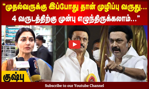 Khushbu | முதல்வருக்கு இப்போது தான் முழிப்பு வருது | 4 வருடத்திற்கு முன்பு எழுந்திருக்கலாம் | குஷ்பு