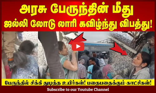 Lorry Accident | அரசு பேருந்தின் மீது ஜல்லி லோடு லாரி கவிழ்ந்து விபத்து! -துடித்த உயிர்கள்!