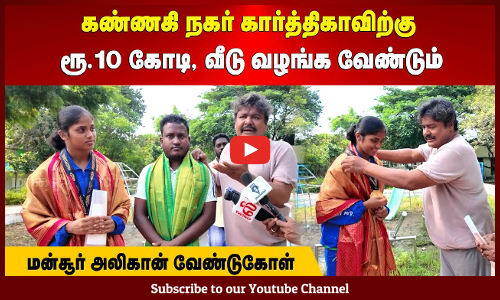 Mansoor Ali Khan | கார்த்திகாவிற்கு ரூ.10 கோடி, வீடு வழங்க வேண்டும்- மன்சூர் அலிகான் வேண்டுகோள்